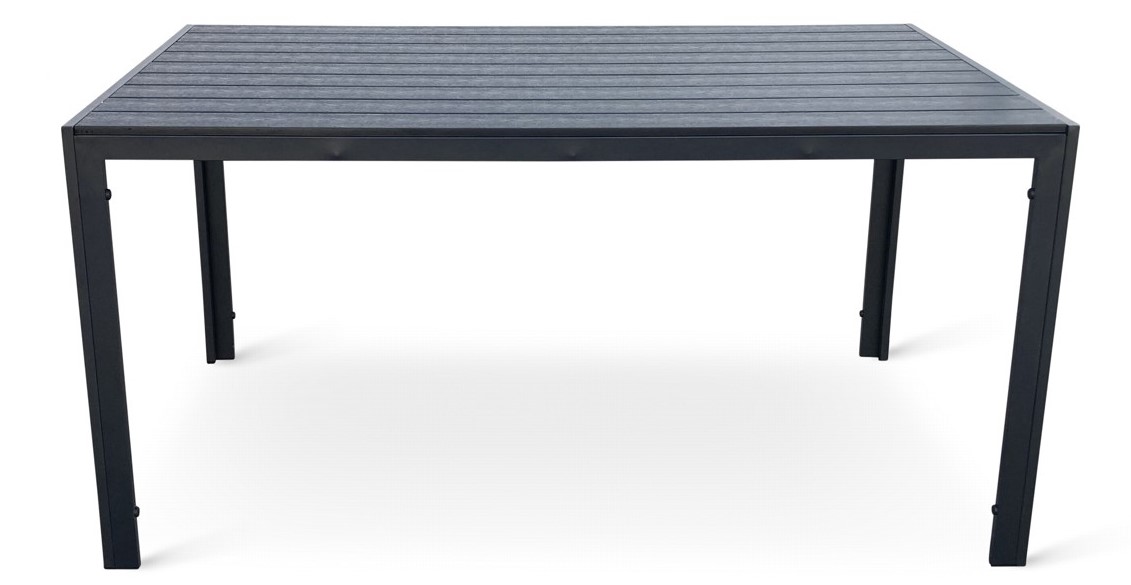Sestava zahrnuje krásný a lehký stůl vyrobený z materiálů, které nevyžadují zvláštní údržbu. Konstrukce z hliníku ošetřeného proti rzi, deska stolu z Artwoodu a adaptéry u nohou pro větší stabilitu. Klasické tvary a černé provedení stolu.